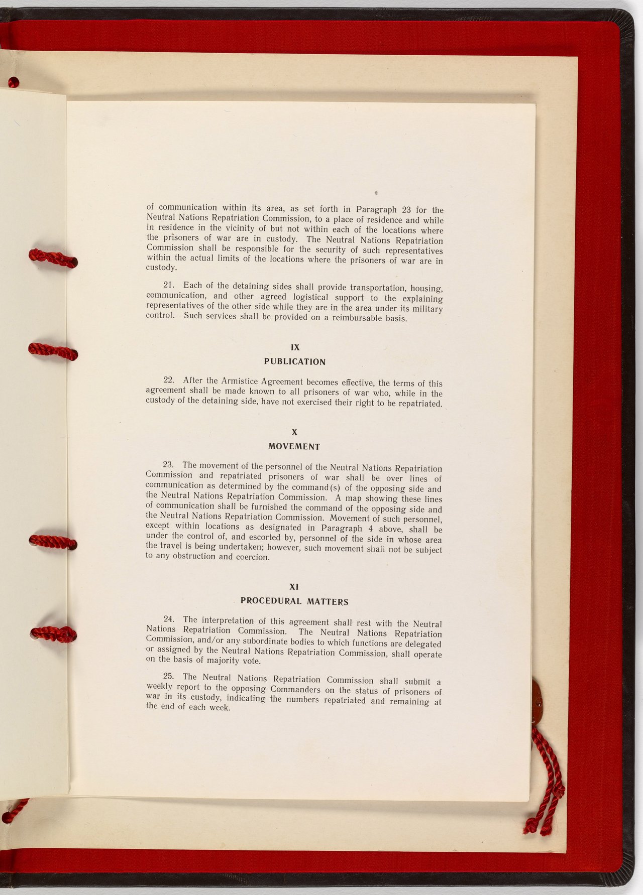 The signed agreement established the Neutral Nations Supervisory Commission (NNSC) consisting of four nations that had not taken part in the Korean War with combat troops. The KPA and the CPV nominated Czechoslovakia and Poland, the UNC nominated Sweden and Switzerland.